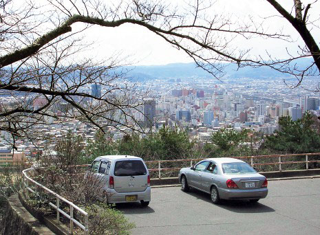 古くから市民に親しまれてきた薬師の峰の展望台。福島市の南部市街地を中心に、西の安達太良連峰まで一望に楽しむことができる。