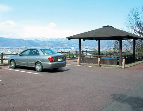 あづまやのある休憩所と駐車場があり(トイレは無い)、松川の清流を眼下に、北部市街地から吾妻連峰・栗子・飯坂までの大展望がひらける。
