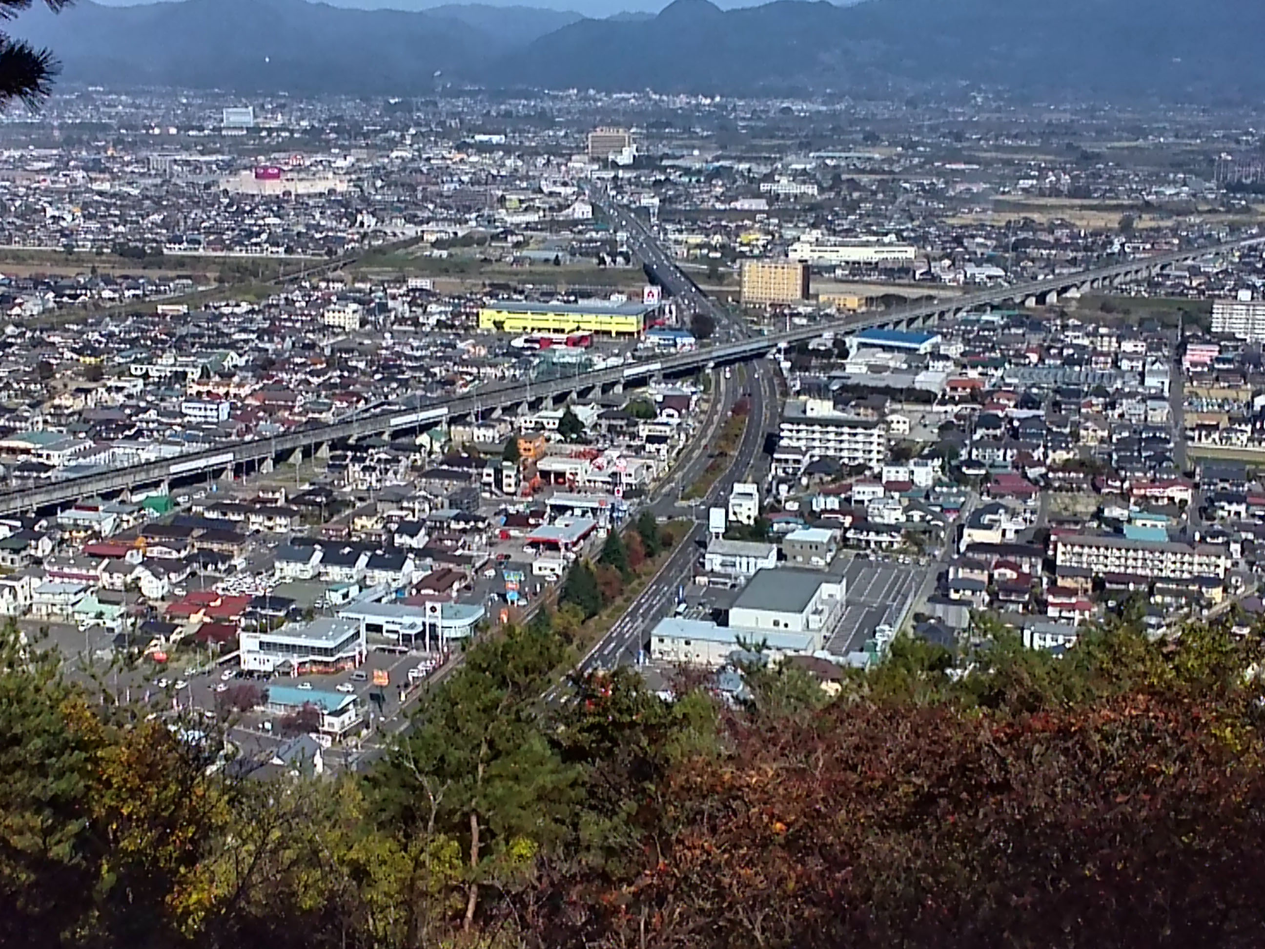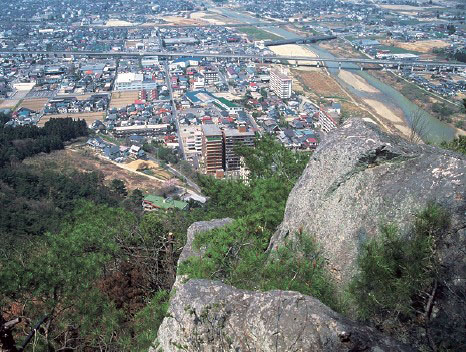 信夫山の西方、湯殿山神社の裏手に、信夫山の最高地点(275m)の大日岩があり、そこから信夫山トンネルで開かれた国道13号線を中心とした福島市北部の大展望が楽しめる