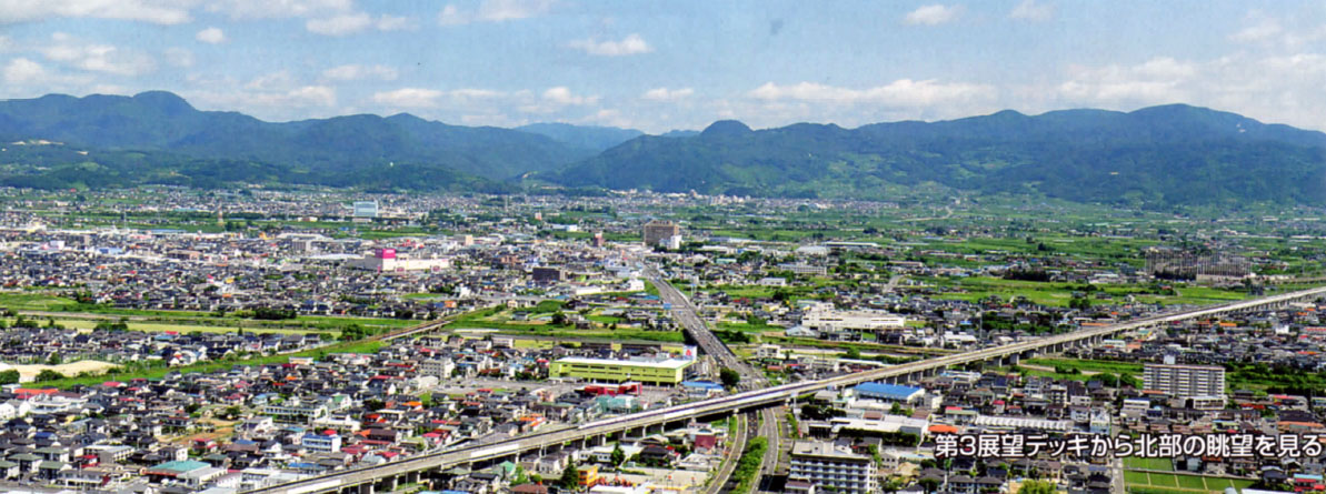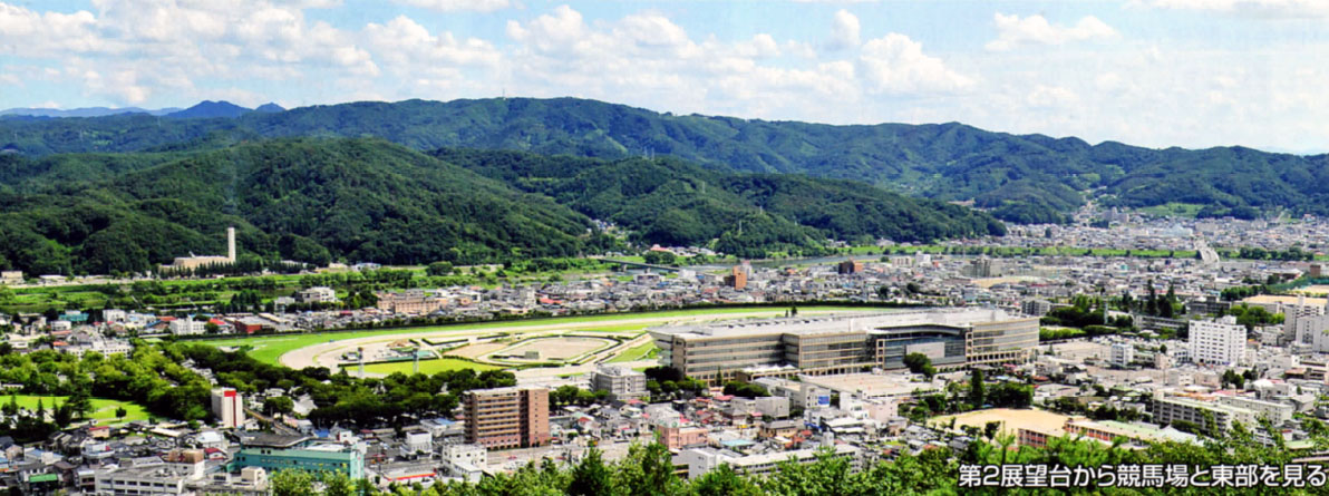 福島市東部の阿武隈山系やJRA福島競馬場を眼下に眺めることができる。