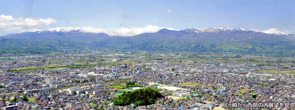 信夫山を代表する大展望が、羽山の西端、烏ヶ崎だ。福島の中心市街地と新幹線の走る福島駅を一望に見ることができる。東に阿武隈川の遠望、西に広大な福島盆地、そして吾妻小富士と吾妻連峰のパノラマが広がる、まさに絶景のポイントだ。展望デッキは、ハイキングのお弁当や休憩拠点としても利用されている。